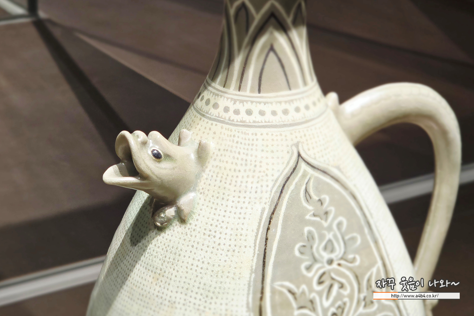 분청사기상감인화모란무니용머리주자 粉靑沙器象嵌印花牡丹文龍頭注子 국적/시대 한국 - 조선 / 재질 도자기 - 분청 / 분류 식생활 - 음식기 - 음식 - 주전자 크기 높이 30.2cm, 입지름 6.8cm, 바닥지름 7.1cm, 전체너비 20.0cm 소장품번호 건희897