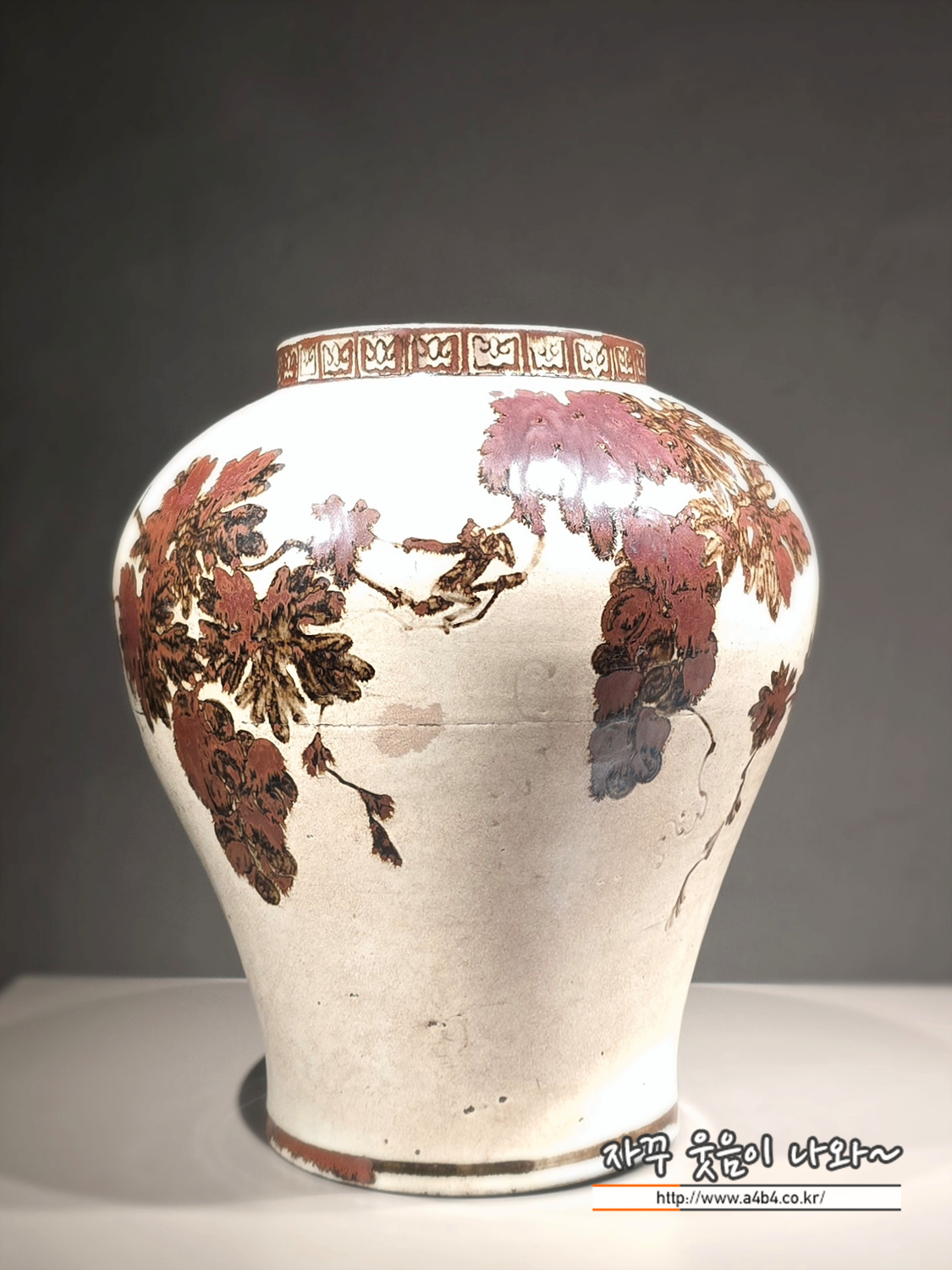 백자 철화 포도 원숭이무늬 항아리 ( 지정문화유산 국보) 다른명칭 국보 백자 철화포도원숭이문 항아리(1962), 白磁 鐵畵葡萄猿文 壺 국적/시대 한국 - 조선 / 재질 도자기 - 백자 분류 식생활 - 음식기 - 저장운반 - 항아리 크기 높이 30.8cm 소장품번호 본관2029