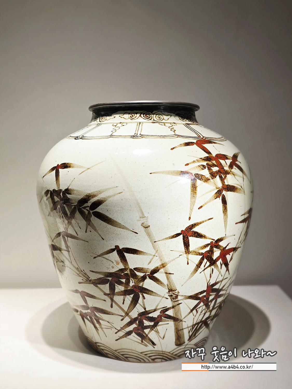 백자 철화 매화 대나무무늬 항아리 ( 지정문화유산 국보) 다른명칭 국보 백자 철화 매죽문 항아리(1974), 白磁 鐵畵 梅竹文 壺 전시명칭 백자 철화 매화 대나무무늬 항아리 국적/시대 한국 - 조선 / 재질 도자기 - 백자 분류 식생활 - 음식기 - 저장운반 - 항아리 크기 높이 40cm, 몸통지름 37.9cm 소장품번호 덕수6294