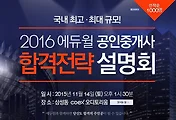 | 공인중개사 시험(2016년/제27회)을 고민하시는 분들께... 2016 에듀윌 공인중개사 합격전략 설명회 (1) | 2015.10.31 |