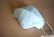 보통 3단 접이식 3D 마스크에는 원형의 귀걸이 끈이 사용되는데, 새부리형 마스크에 많이 사용되는 납작한 스판끈이 사용되었습니다.