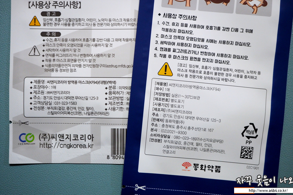 동화약품 마스크는 씨앤지코리아 마스크와 동일한 제품입니다.