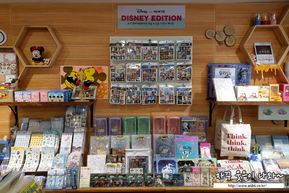 10x10과 디즈니가 콜라보한 디즈니 에디션 제품들과 문구류도 판매되고 있습니다.