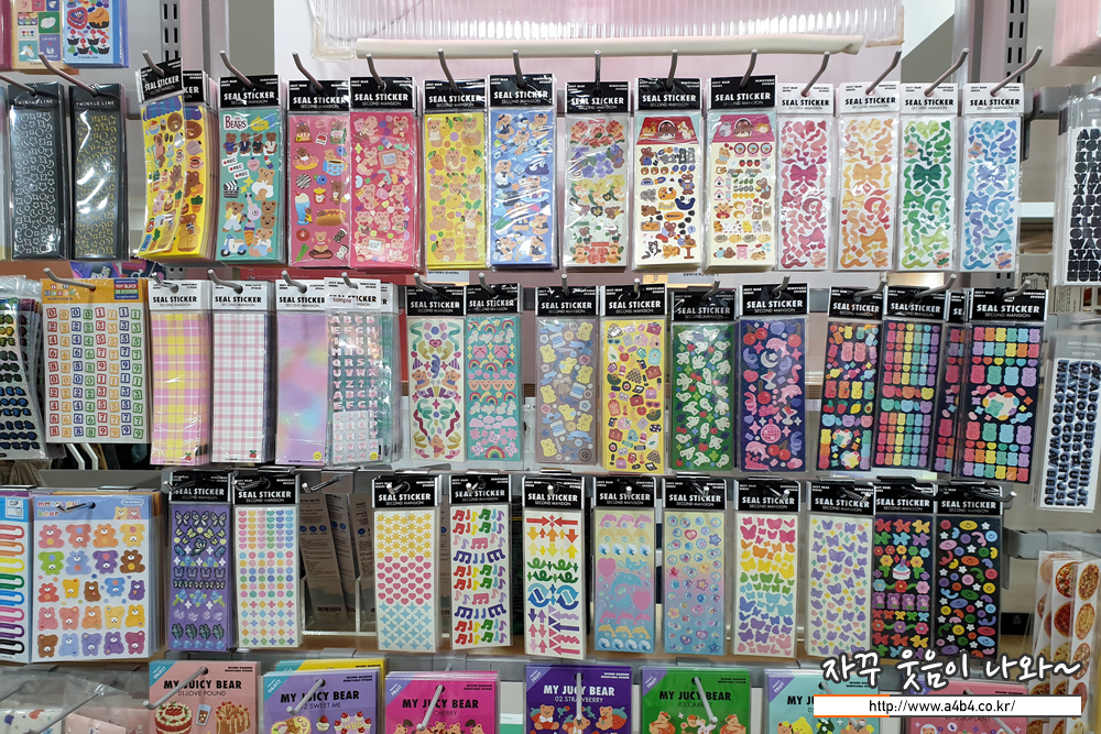 문방구라는 이름에 딱 어울리는 소품들... 다양한 스티커와 메모지 하나가득
