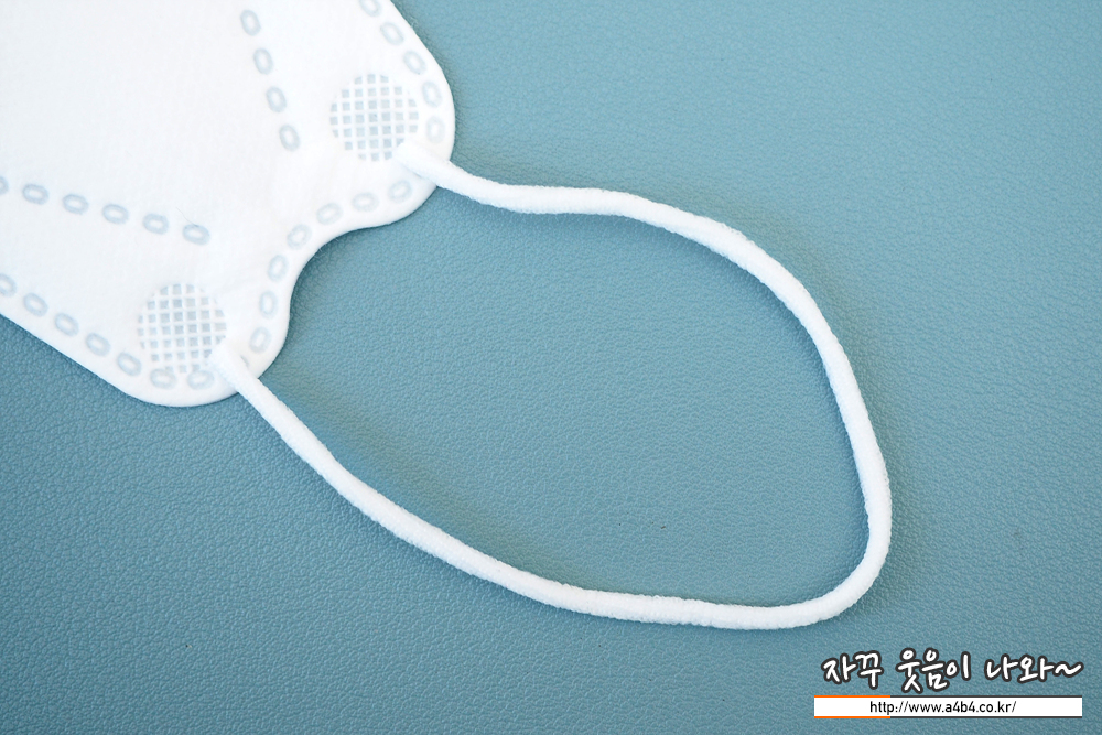 둥근모양의 귀걸이끈은 마스크 전면에 부착되어 있으며, 귀걸이끈 탄성은 잘 늘어나는 편입니다.