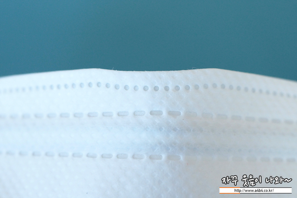 이로운 마스크는 4중구조 타입으로 하드한 타입과 소프트한 타입의 중간정도 착용감을 보여줍니다. 마스크 겉감은 패턴처리되어 있으며 촉감은 매끄러운 편입니다.