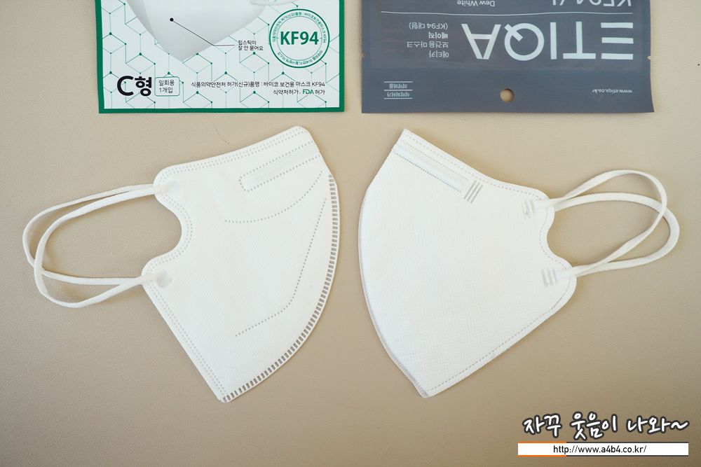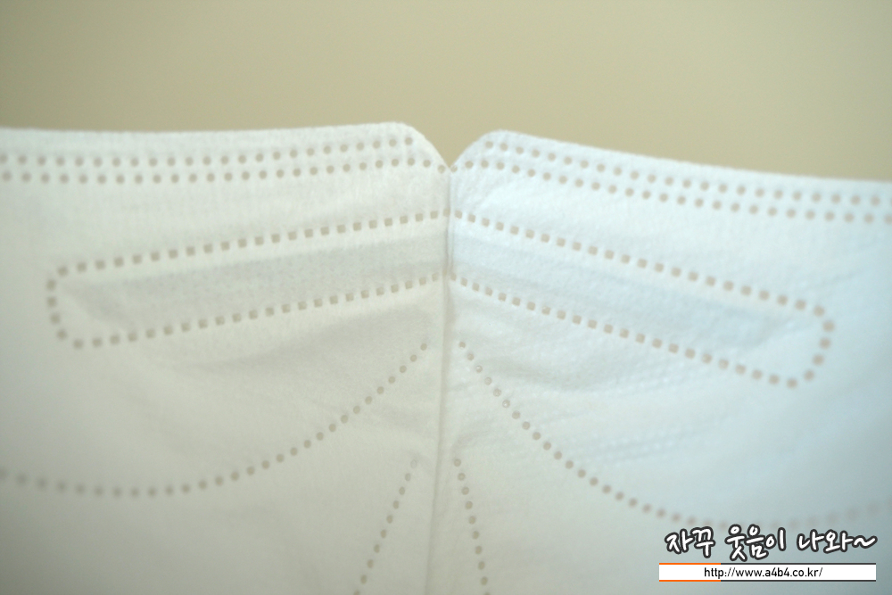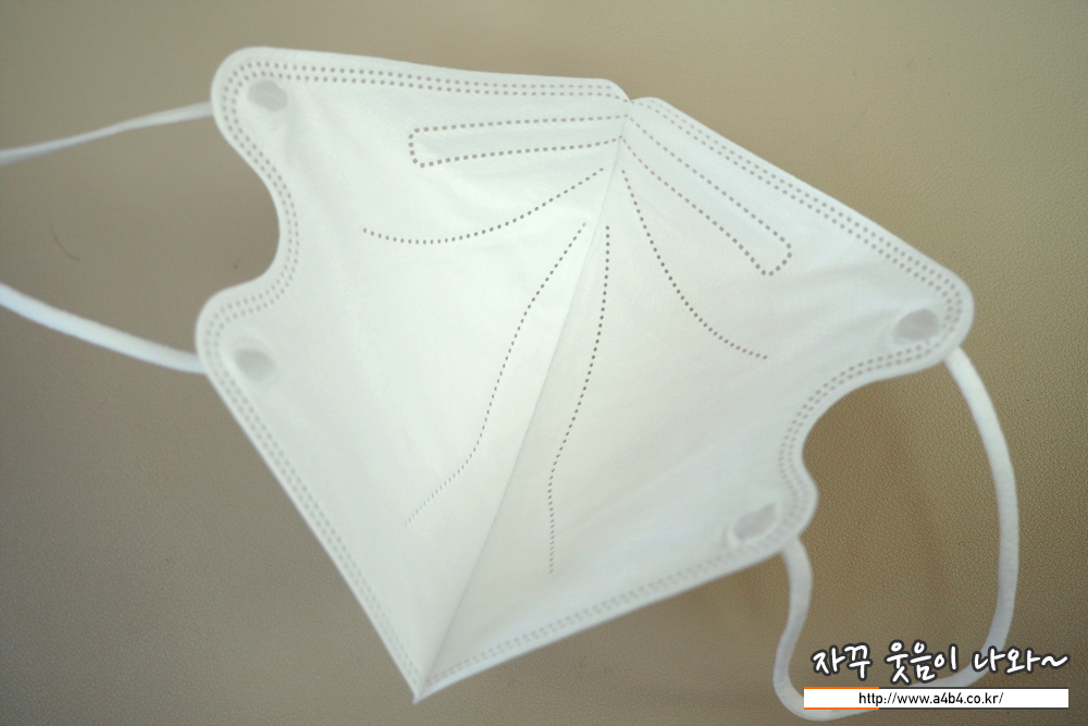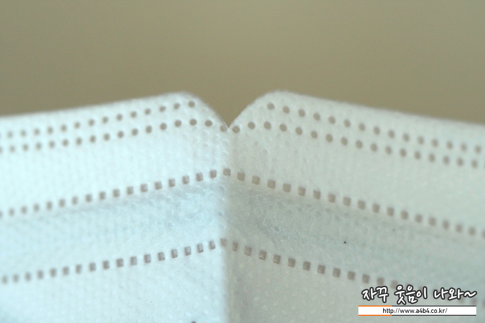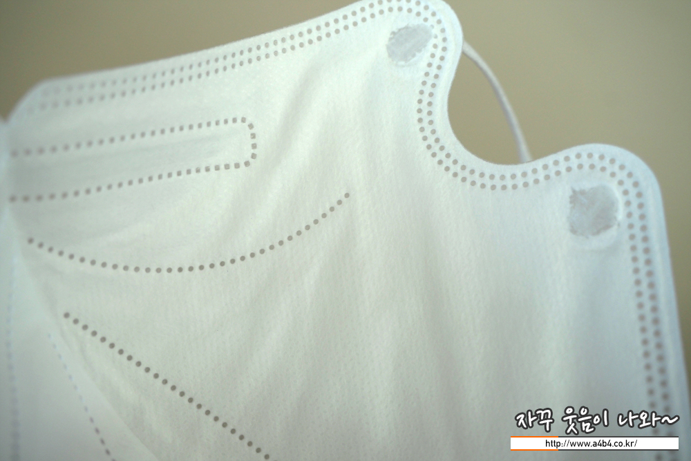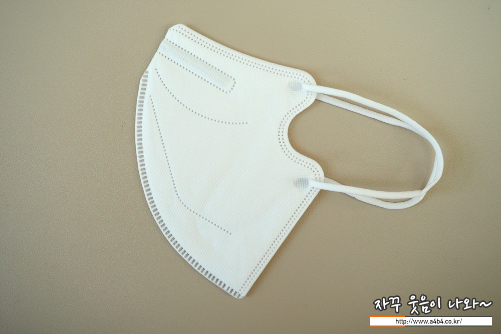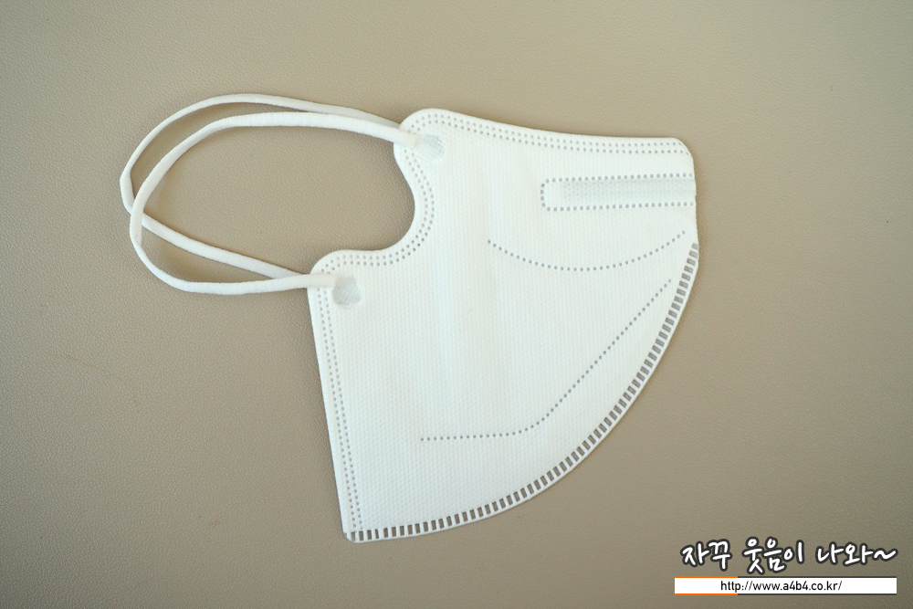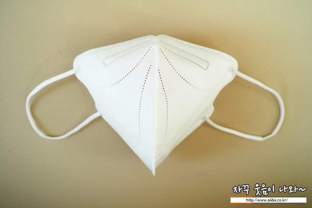 제조사 안내에 따르면 4중 필터방식의 KF94 대형 마스크입니다. 타사의 KF94 마스크와 비교해서 얇은 타입의 제품으로 착용감 또한 소프트한 느낌을 주고 있습니다. 약한 엠보싱 처리된 겉감은 드라이한 촉감을 주고 있습니다.