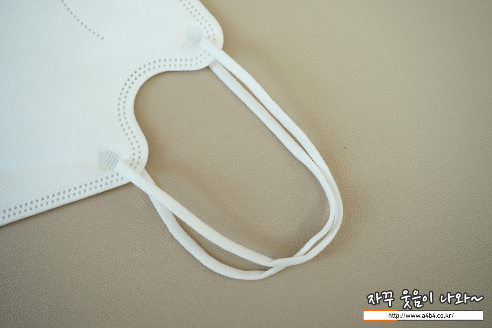 새부리형 마스크나 고급형 3단접이식 마스크에서 많이 사용하는 납작한 디자인의 귀걸이끈이 사용되었습니다. 탄성은 보통 수준이며, 원형의 귀걸이끈에 비해 귓불에 자극이 덜한 것이 장점입니다.