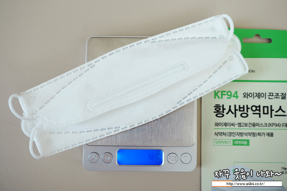 와이제이 끈조절 마스크 대형 KF94 중량은 4.8그램으로 다른 대형마스크 중량수준입니다.