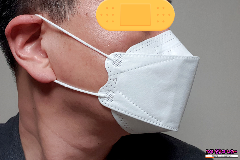 역시나 얼굴 큰 얼큰이인 저에게는 조금 불편한 착용감을 보여주는 대형 사이즈 마스크 입니다.