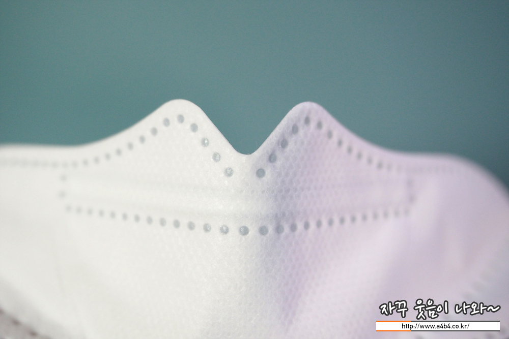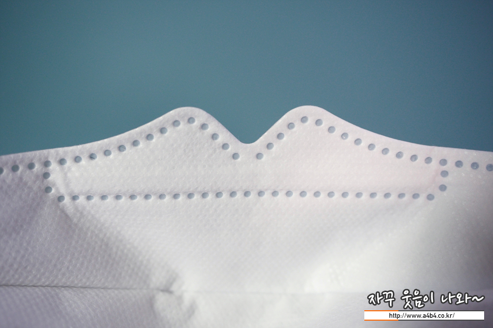 외피는 약한 엠보싱처리된 드라이한 감촉의 부직포를 사용했습니다. 마스크는 3중 필터 타입이지만 약간의 두께감이 있으며, 착용감은 일반적인 타입입니다.