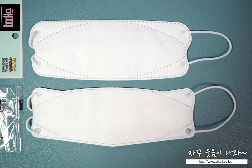 마스크 모양은 가로 3단접이 3D 스타일 입체형 마스크 디자인을 보여줍니다. 약간은 톡특한 디자인의 사각 마스크 모양을 보여줍니다. 군더더기 없이 깔끔하게 정리된 제품