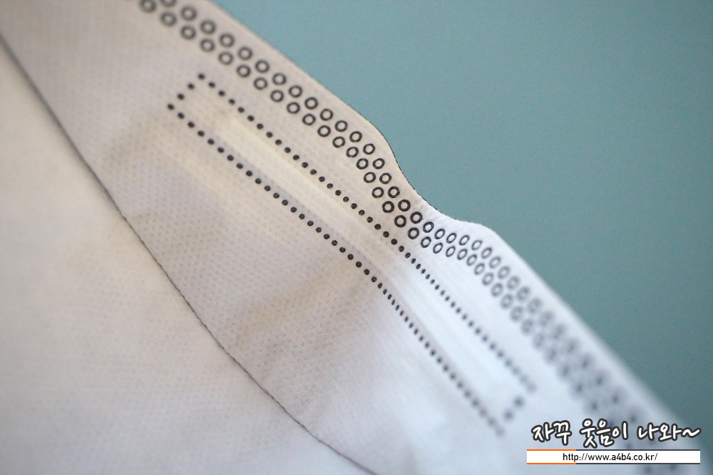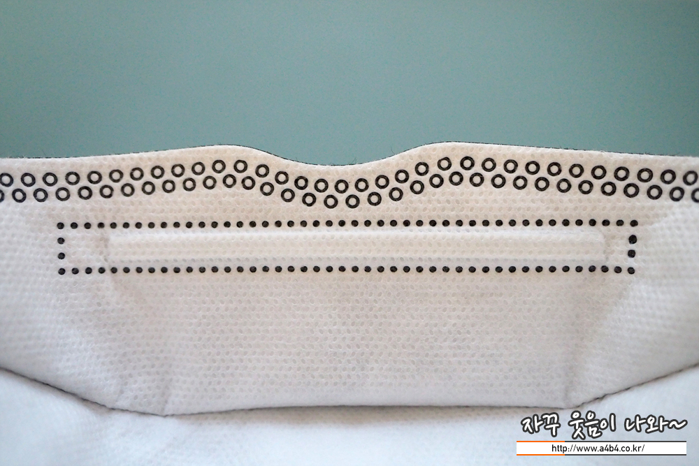 마스크 안감 또한 약한 패턴처리된 매끈한 감촉의 부직포가 사용되었습니다. 제가 좋아하는 타입의 안감입니다.