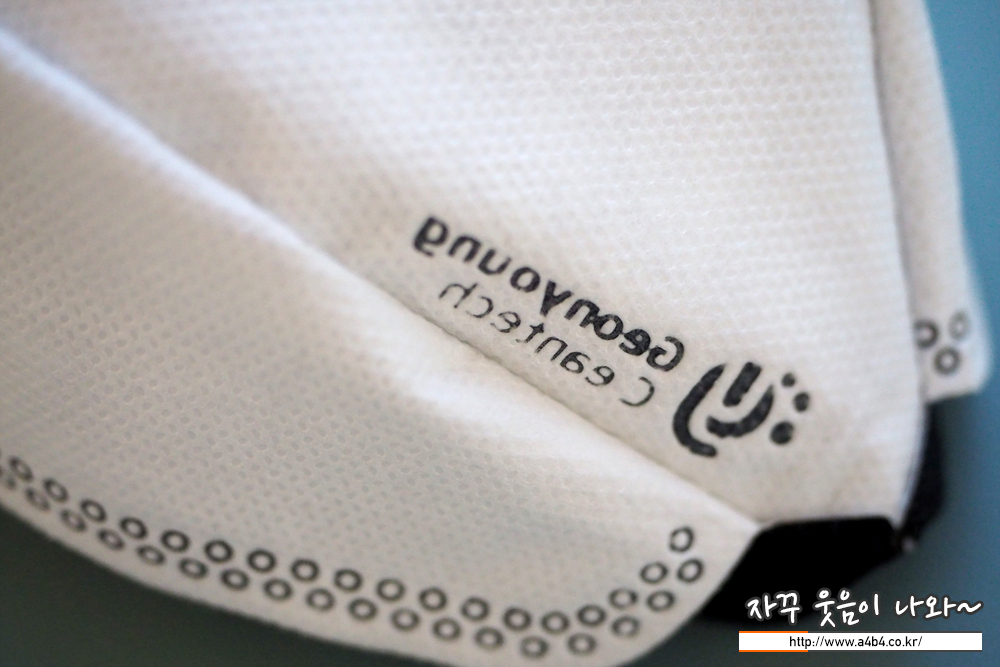 마스크 전면에는 건영크린텍 영문 로고와 이미지가 음각 처리되어 있지만, 다른 블랙 색상의 마스크와 같이 깔끔해 보이지는 않습니다. 역시 음각 처리는 화이트 색상의 마스크에 잘 어울린다는...