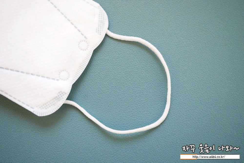 원형의 귀걸이끈이 코멕스 마스크 후면에 접착되어 있습니다. 귀걸이끈 탄력은 일반적인 수준을 보여줍니다.