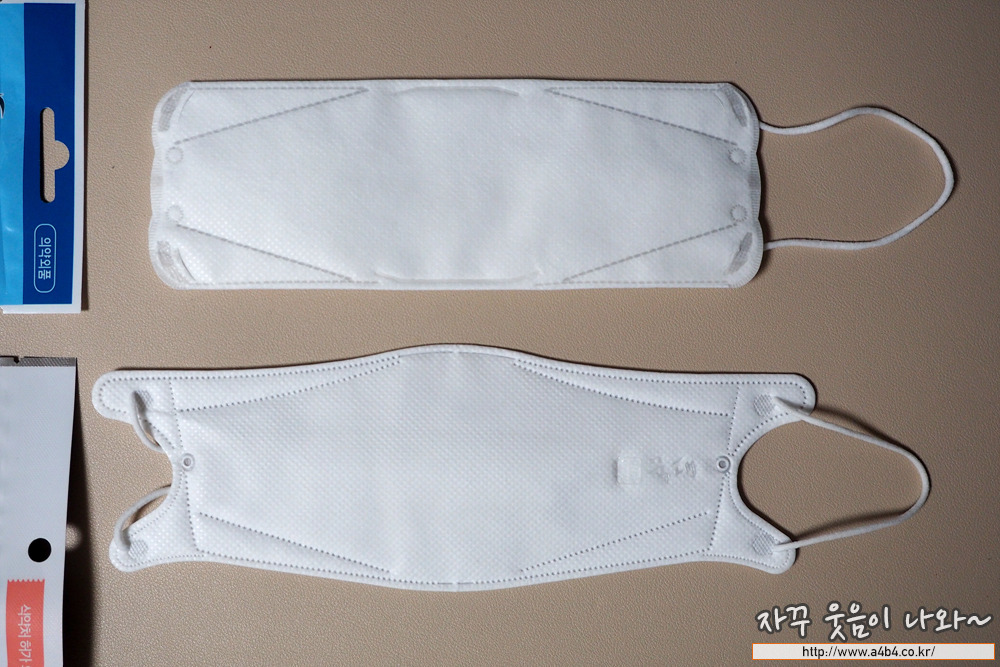 디자인은 일반 삼단접이식 입체형 마스크입니다. 다만 최근의 마스크 디자인이 라운드 처리가 강한 반면 코멕스 프리미엄 황사마스크 디자인은 직각 사각형에 가까운 약간은 둔탁한 디자인을 보이고 있습니다. (그러나 이 부분이 대두에게는 축복이 된다는...)
