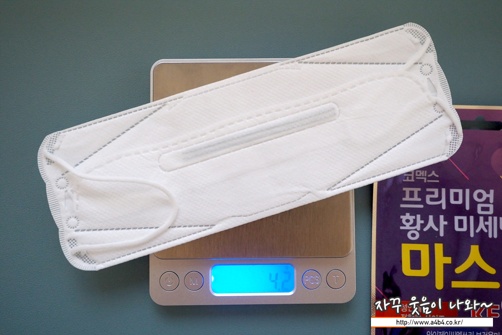 KF94 코멕스 마스크 대형 무게는 4.2그램으로 타사의 대형사이즈 마스크보다는 무게가 약간 가벼운 편에 속합니다.