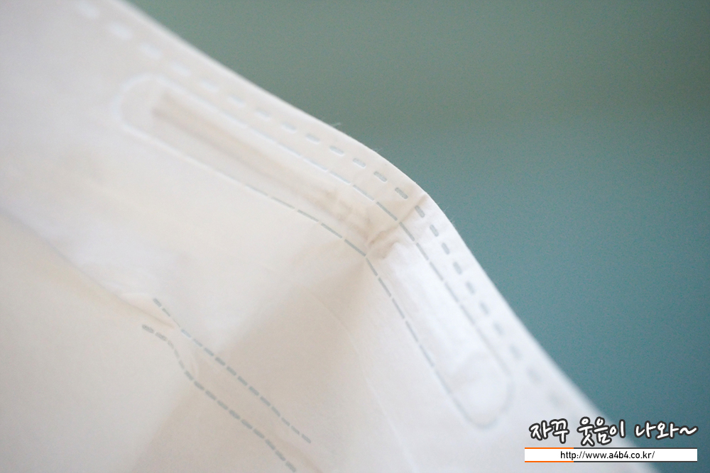 마스크 안감은 드라이하면서도 매끄러운 감촉의 부직포가 적용 되었습니다. 보풀은 없으며, 장시간 마스크를 이용해도 간지럽거나 가려운 문제도 생기지 않습니다. 개인적으로 상당히 선호하는 타입의 안감