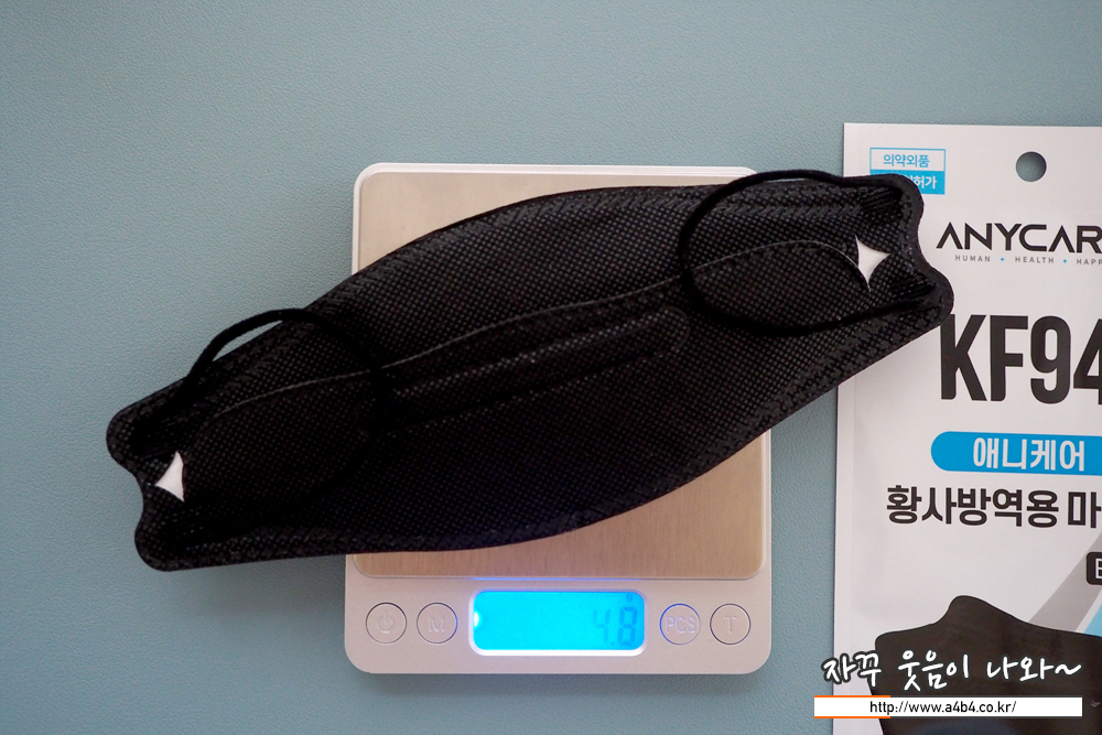 마스크 중량은 4.8그램으로 타사 대형마스크와 비슷한 수준입니다.