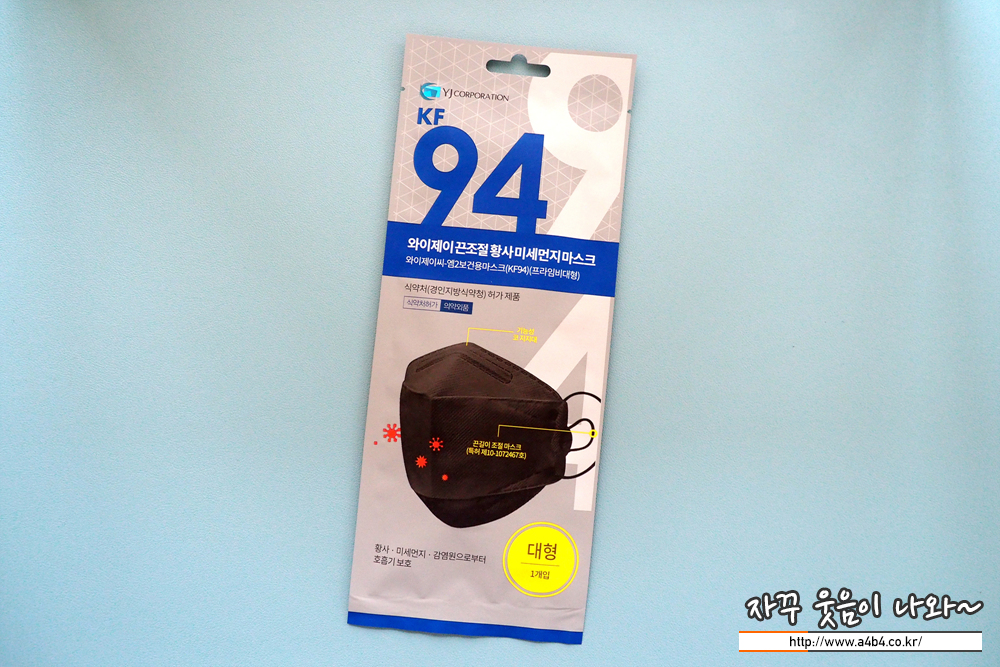 KF94 와이제이 끈조절 황사 미세먼지마스크 대형 블랙 무게는 5.1그램으로 일반 대형사이즈 마스크 중에서는 무게감이 좀 있는 제품입니다.
