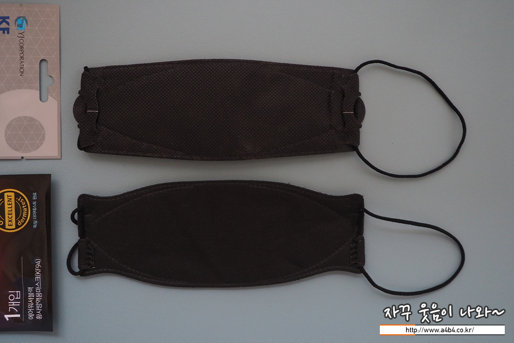 위와 아래 사진 두 장이면 설명이 충분할 것 같네요. 착용감과 기능에는 상관이 없겠지만, 특히 블랙 색상의 컬러마스크에서는 상당히 아쉬운 부분입니다.