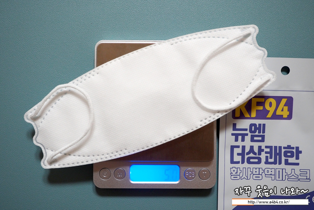 뉴엠코리아 더상쾌한 마스크 KF94 대형 중량은 5.0그램으로 타사의 대형 마스크와 비슷한 중량입니다.