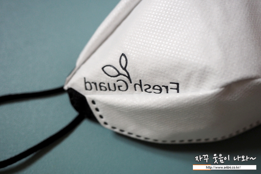 후레쉬가드 방역마스크 디자인은 가로 삼단접이식 입체형 마스크로 일반적인 디자인의 마스크입니다. 디자인에서는 큰 특장점이 없는 제품입니다. 흔히 볼 수 있는 디자인... 마스크 전면에는 제품명인 후레쉬 가드 명칭이 새싹 심볼과 함께 각인되어 있습니다.