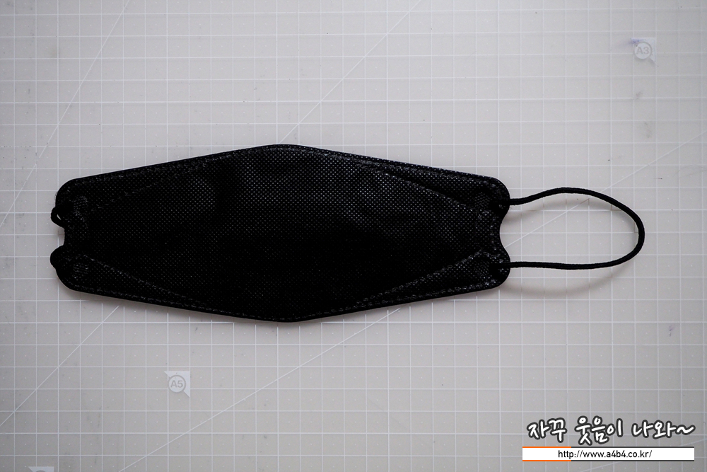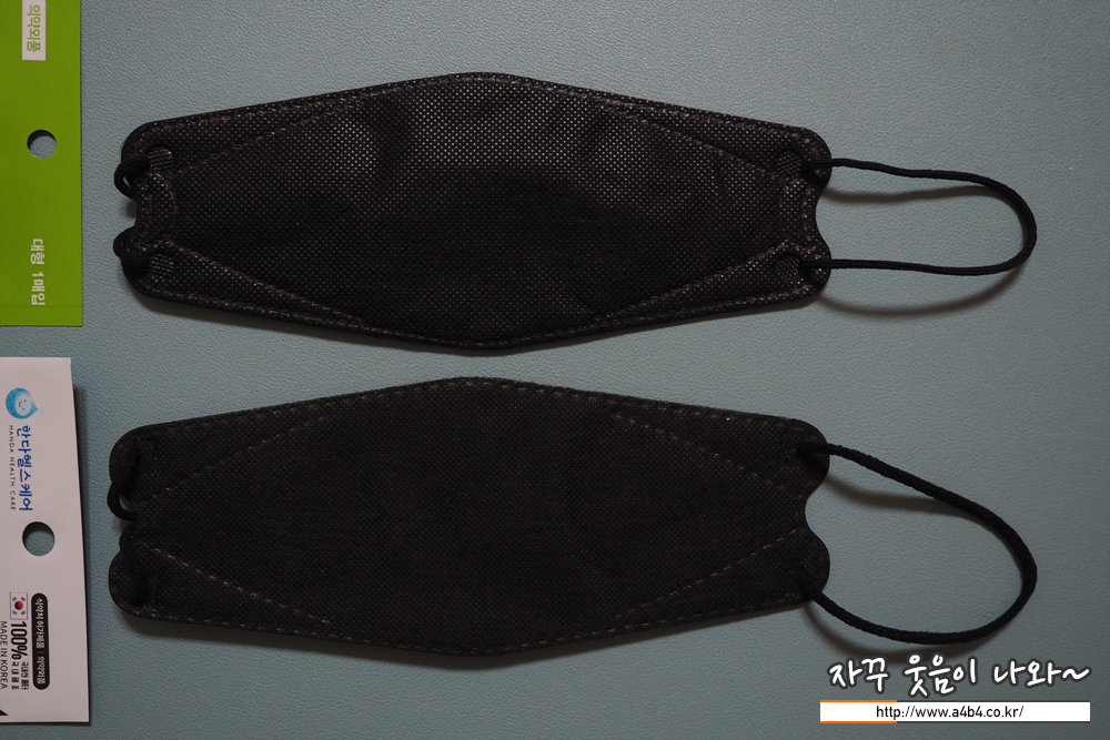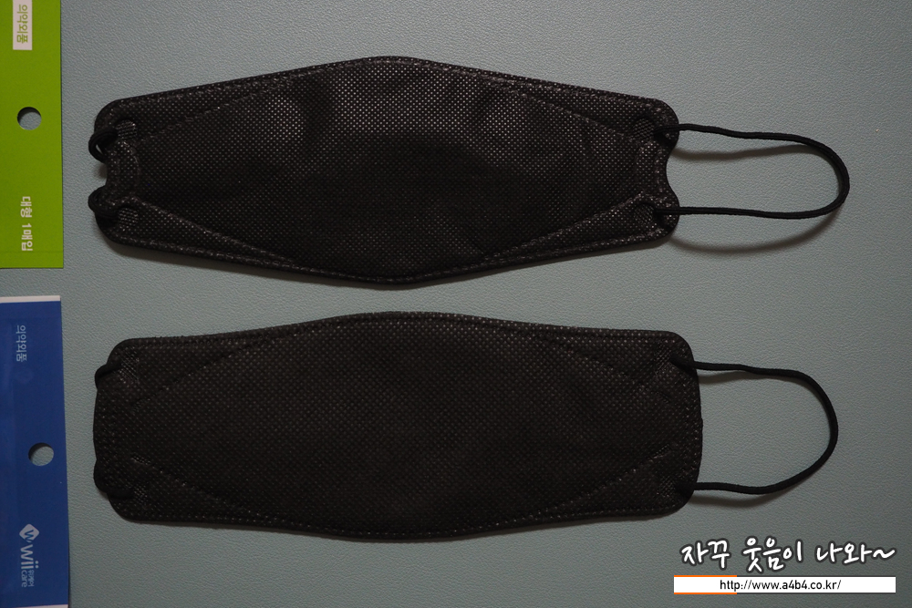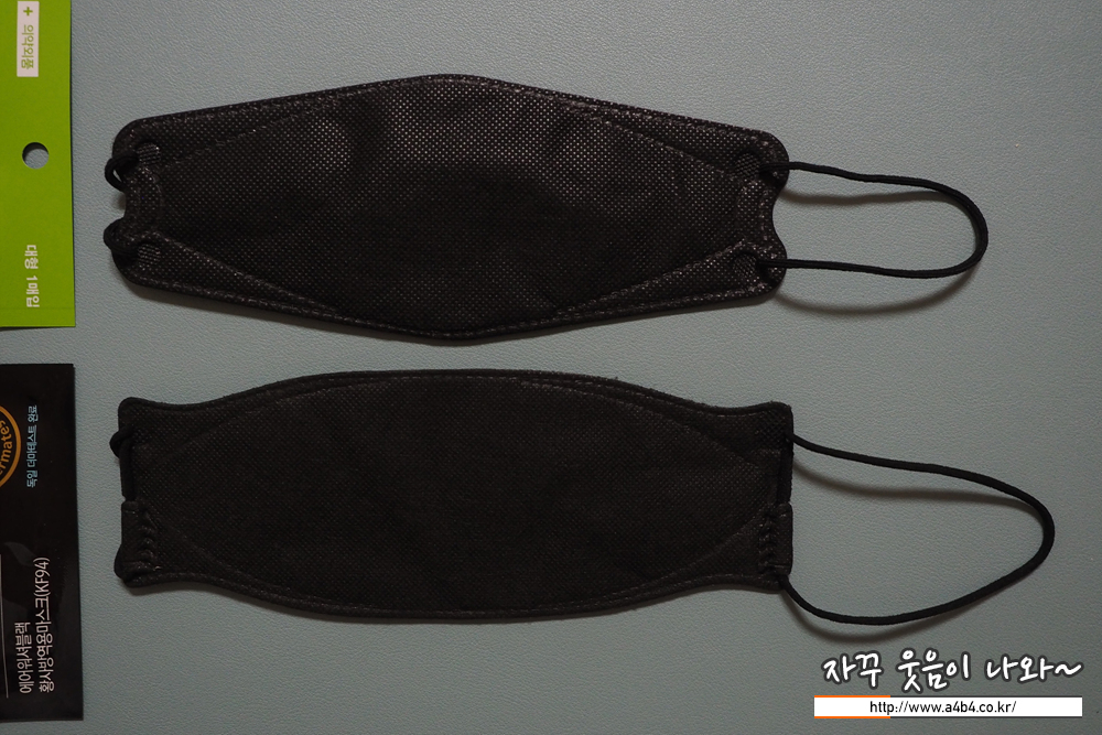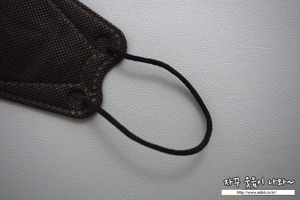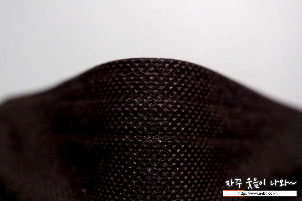 마스크 외피는 엠보싱 처리된 매끄러운 감촉의 부직포 처리가 되어 있습니다. 반유광 블랙으로 염색 처리는 무난하게 발색도 상당히 고급스럽고 양호하게 처리되어 있습니다. 중저가 마스크 중에서는 상대적으로 잘 처리된 블랙 마스크입니다.