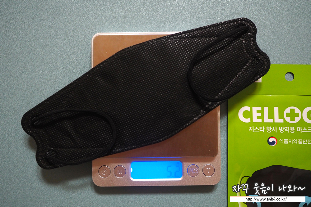 KF94 셀로긴 마스크 대형 중량는 5.2그램으로 일반 대형사이즈 마스크 중에서는 조금 무거운 중량을 보입니다.
