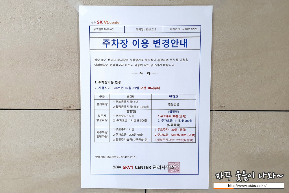 이케아랩 성수점에는 별도의 주차장이 없습니다. 양쪽에 위치한 성수 SK V1 센터 지하 주차장을 이용해야 합니다. 또한 주차장 입구는 대로변이 아닌 안쪽에 위치해 있으니 처음 오시는 분들은 네비게이션 지도 잘 보세요