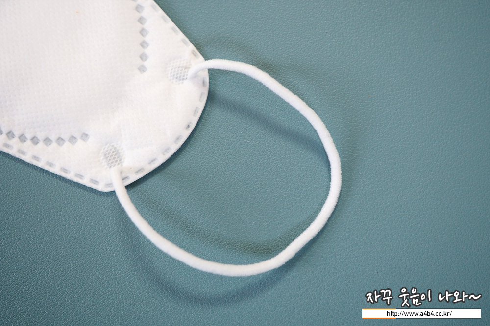 둥근모양의 이어밴드는 마스크 전면에 접착되어 있으며 이어밴드 탄력은 보통수준을 보여줍니다.