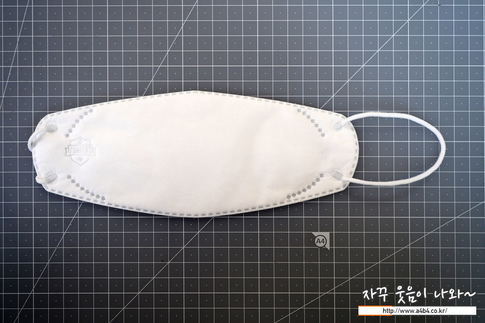 성상 1) 흰색 : 문양이 있는(PUIRITAS) 흰색의 3단 가로접이식 본체에 코편이 있고, 양 측면에 흰색의 끈이 있는 부직포 마스크 2) 검정색 : 문양이 있는(PURITAS) 검정색의 3단 가로접이식 본체에 코편이 있고, 양 측면에 검정색의 끈이 있는 부직포 마스크