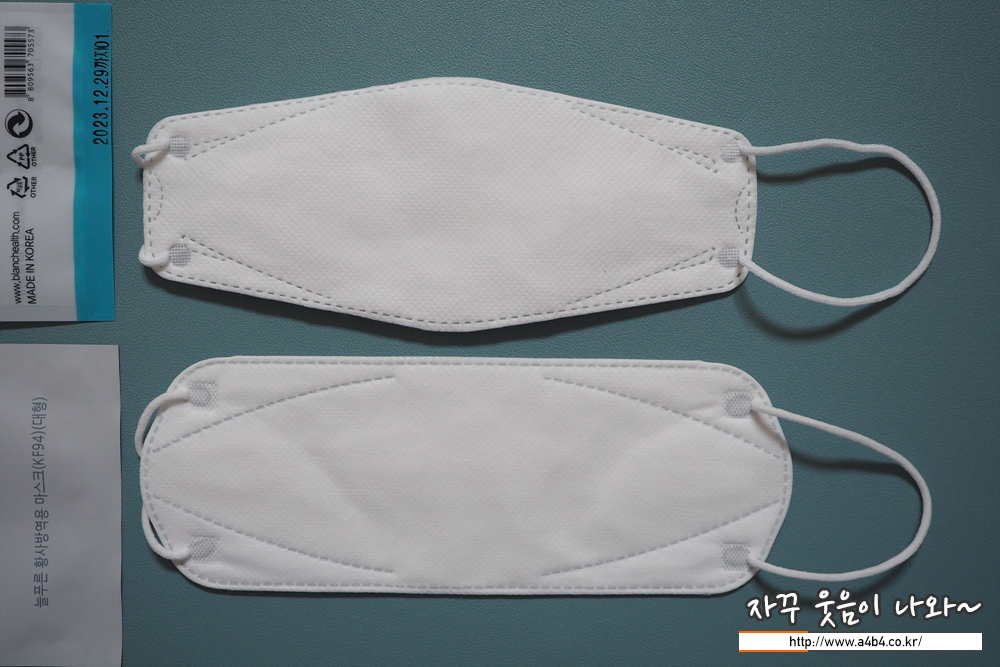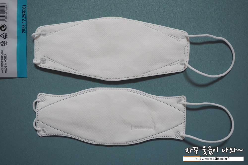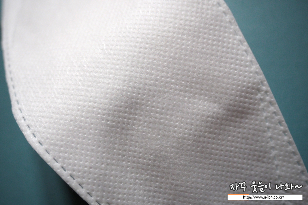 KF94 블랑 헬스케어마스크 안감은 드라이한 감촉의 안감이 사용되었습니다. 마스크 안쪽에는 약간의 보푸라기가 보이는데요. 그렇다고 얼굴이 간지럽거나 가려운 피부 트러블은 없습니다. (개인차는 있을 것으로 생각 합니다.)