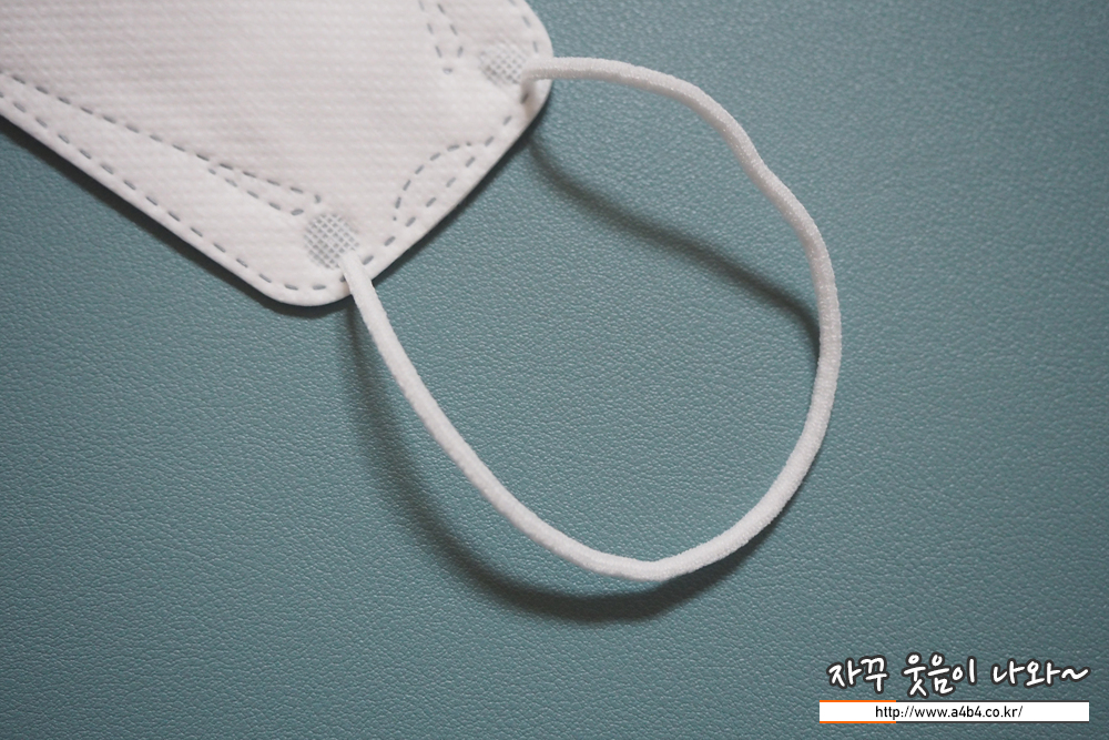 KF94 클린온 마스크는 원형의 귀걸이끈이 마스크 앞면에 접착되어 있으며 귀걸이끈 탄력은 타사 제품과 비슷합니다.