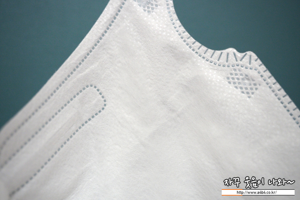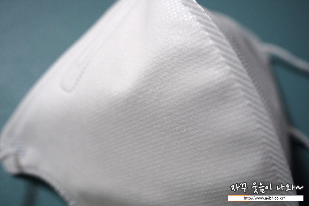 퓨어라이프 데일리 마스크 겉감은 약한 엠보싱 처리된 매끄러운 감촉의 부직포가 사용되었습니다. 4중 필터방식으로 타사 제품에 비해 얇은 타입의 마스크입니다. 또한 마스크가 얇아서 그런지 착용감 또한 소프트한 편입니다.