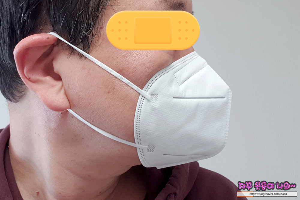 저 같은 얼굴 큰 대갈장군을 위한 대두 마스크는 아닙니다. 착용 힘들어요. 착용샷을 보셔도 마스크가 얼굴을 압박하네요. 귀도 당깁니다. 물론 일반 성인분들에게는 무난한 사이즈의 마스크입니다.