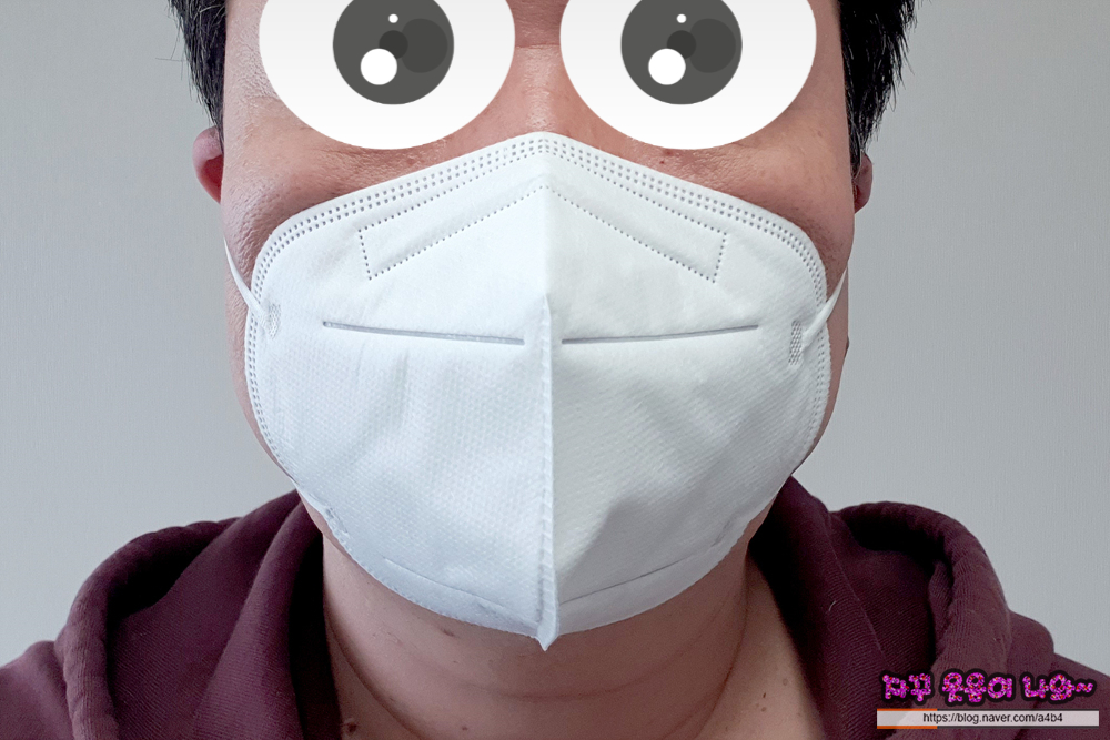 저 같은 얼굴 큰 대갈장군을 위한 대두 마스크는 아닙니다. 착용 힘들어요. 착용샷을 보셔도 마스크가 얼굴을 압박하네요. 귀도 당깁니다. 물론 일반 성인분들에게는 무난한 사이즈의 마스크입니다.
