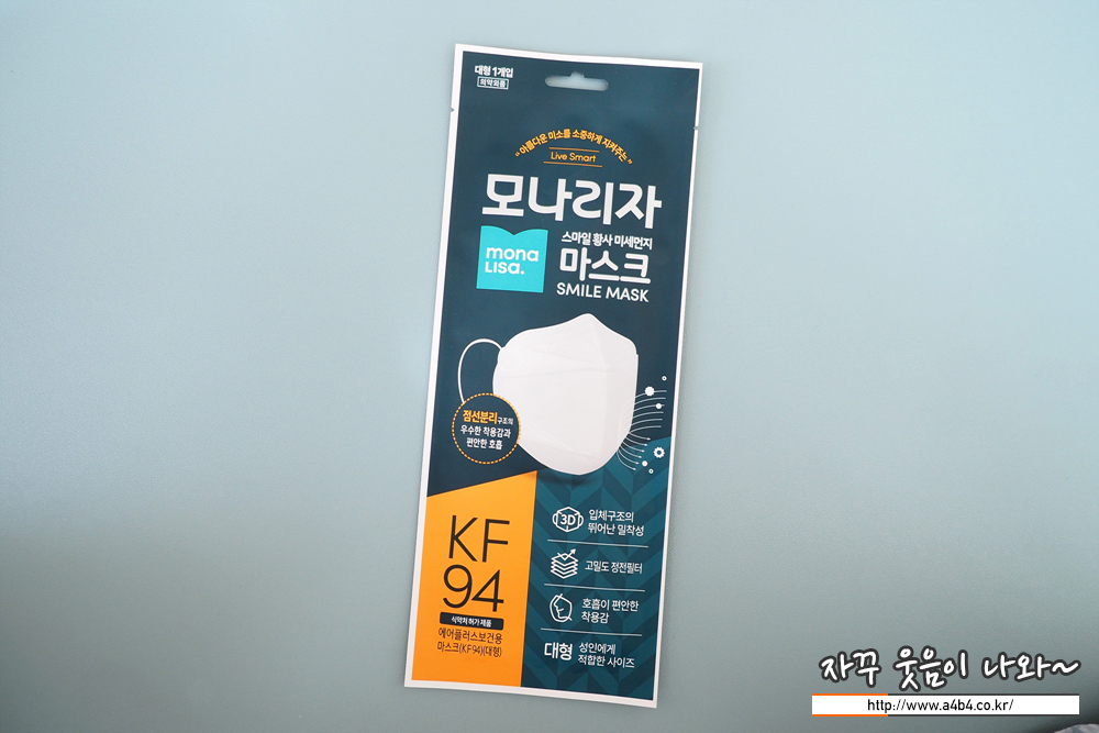 오랜만에 유명 브랜드 마스크 소개입니다. 화장지로 유명한 모나리자에서 제조 및 유통하는 '모나리자 스마일 황사 미세먼지 마스크' 대형 후기 공유합니다.