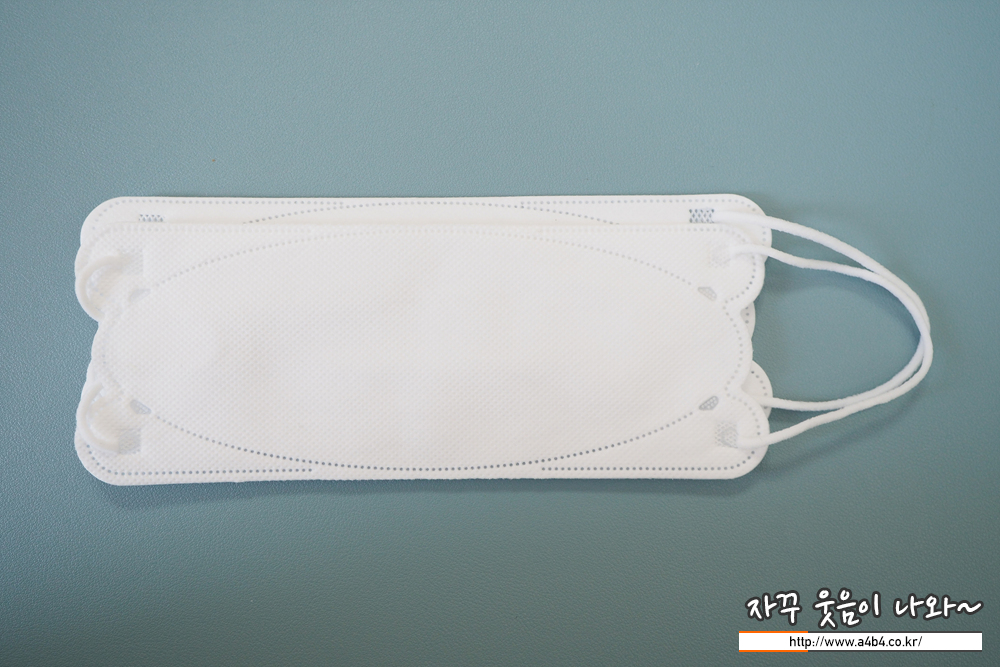 마스크 모양은 사각에 가까운 가로 삼단접이식 입체형 마스크입니다. 타사 제품과 다른 부분은 중앙과 양쪽 끝부분의 높이가 같은 사각형에 가까운 디자인으로 이어밴드 사이의 간격이 최대한 확보되게 설계되어 있습니다. (이 부분은 장단점이 있겠죠 ^^)