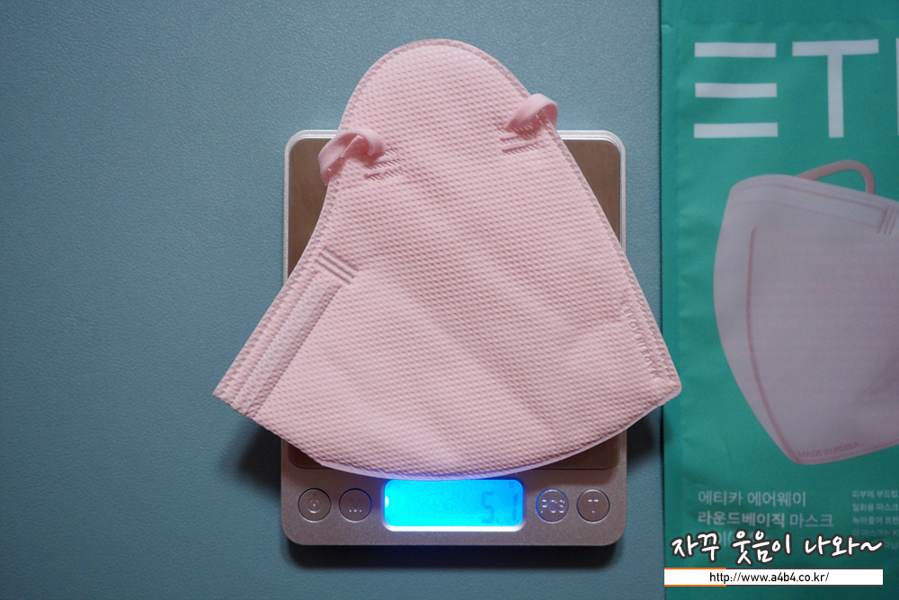에티카 에어웨이 라운드베이직 마스크 에이 중형 무게는 5.1그램으로 새부리 중형 마스크 중에서는 약간 무거운 편입니다.