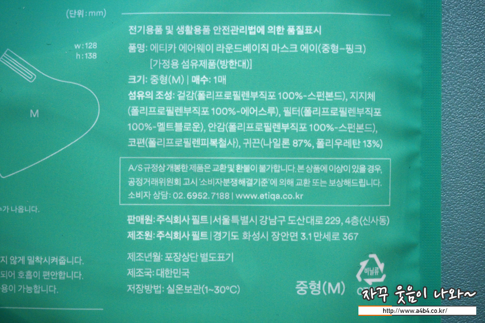 글 앞에서도 말했지만 다양한 컬러의 '에티카 에어웨이 라운드베이직 마스크'는 식약처에서 관리하는 보건용 마스크가 아닌 공산품 마스크입니다. 에티카에서 품질관리를 잘 하겠지만, 역시 이부분은...