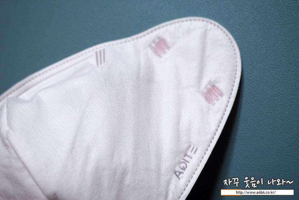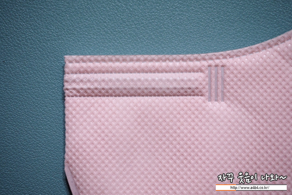 마스크를 보는 순간 '이쁘고 고급스럽게 잘 만들었다'라는 생각이 드는 제품입니다. 마스크 외피는 강한 패턴처리된 매끄러운 감촉의 부직포가 사용되었으며, 조금 두툼한 느낌을 주고 있습니다.