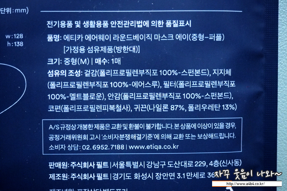 제품명은 '에티카 에어웨이 라운드베이직 마스크 에이'입니다. 6가지 컬러 중에서 오늘은 퍼플색상 중형 사이즈 제품으로 리뷰진행합니다.