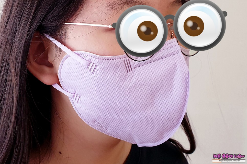 마스크 착용감은 기존 KF94 에티카 보건용마스크와 동일합니다. 착용자의 얼굴형에 따라 이어밴드 접착 부분의 부직포 부분이 들뜨는 일명 아가미핏이 우려되기도 하는데요. 라운드 베이직이 아닌 모델로 나왔으면 좋았을 것 같네요