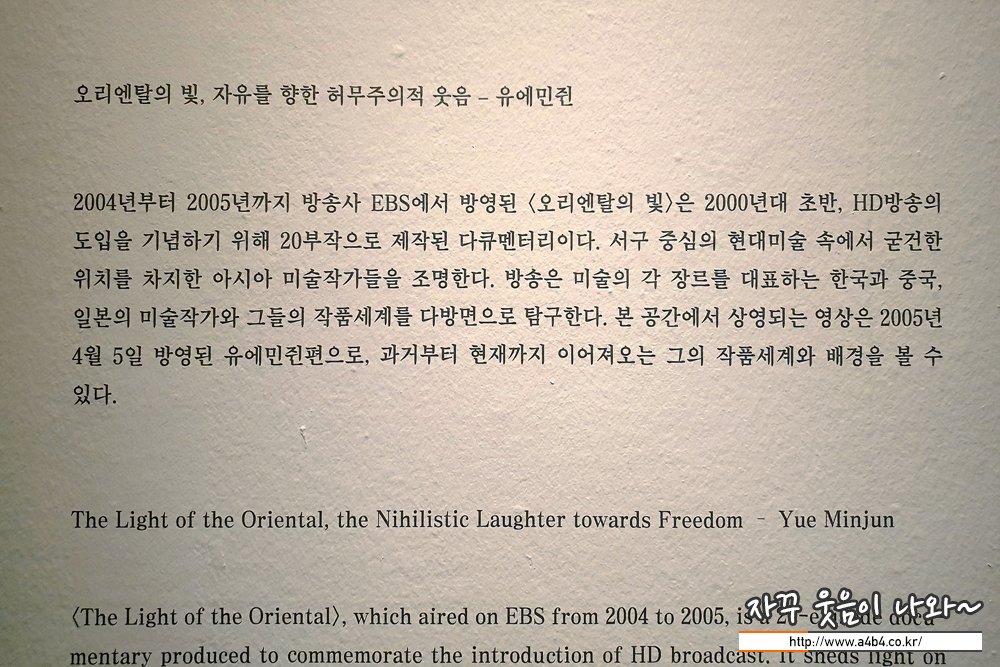 오늘은 예술의전당 한가람미술관에서 열리고 있는 중국 현대화가 유에민쥔 전시회 소개입니다.