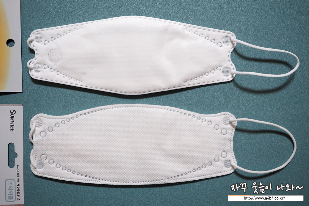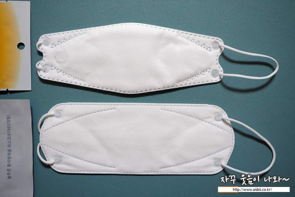 비티 마스크는 소프트한 스타일의 얇은 마스크로 무난한 착용감을 보여줍니다. 다만 얇고 소프트한 타입으로 착용핏이 잘 나오지는 않습니다. (마스크가 조금 우네요...) 그렇다고 착용감이나 마스크 안쪽 공간 확보에 문제가 있지는 않습니다. 전체적으로 무난한 타입의 마스크입니다.