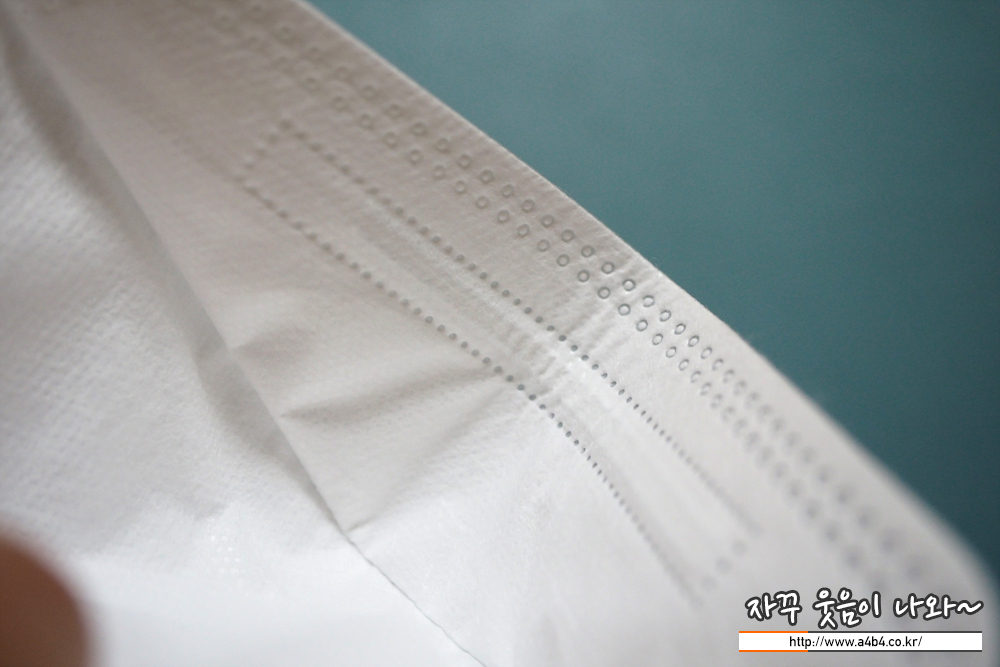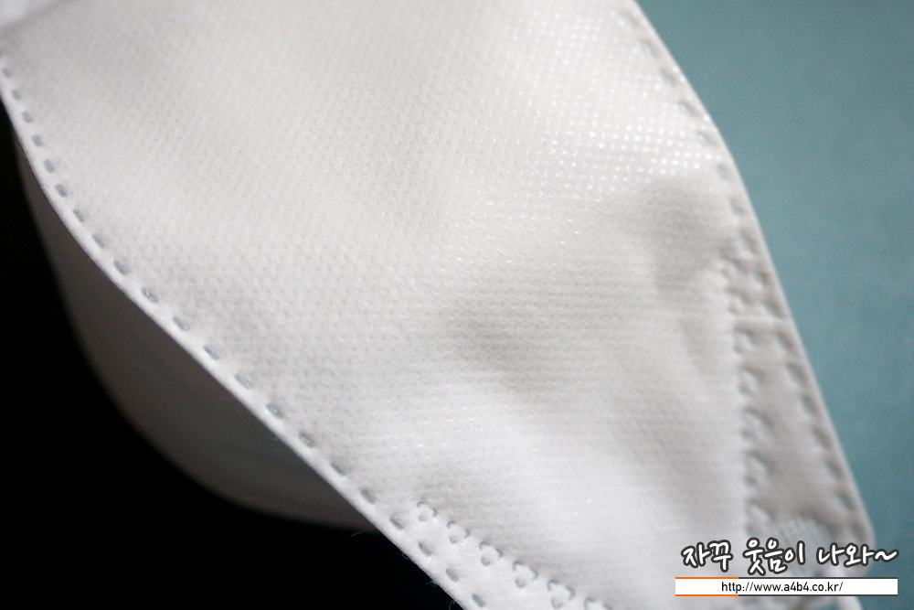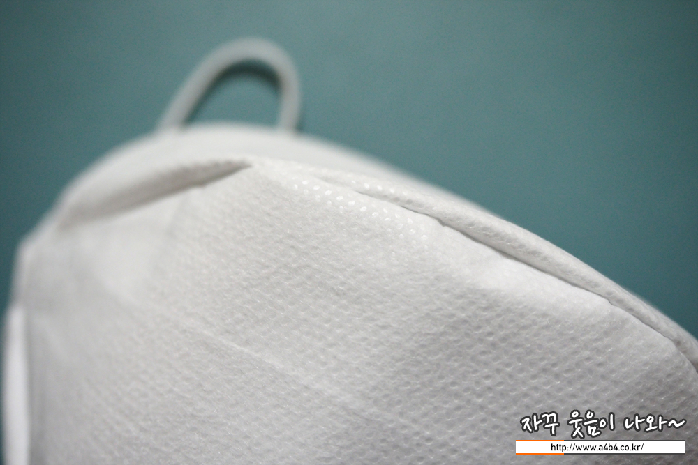 비티 마스크 내피는 드라이한 촉감의 부직포가 내피로 시용되었습니다. 마스크 내피에 보풀은 없지만 마스크 접착면 주변으로 약간의 보푸라기는 보이네요.