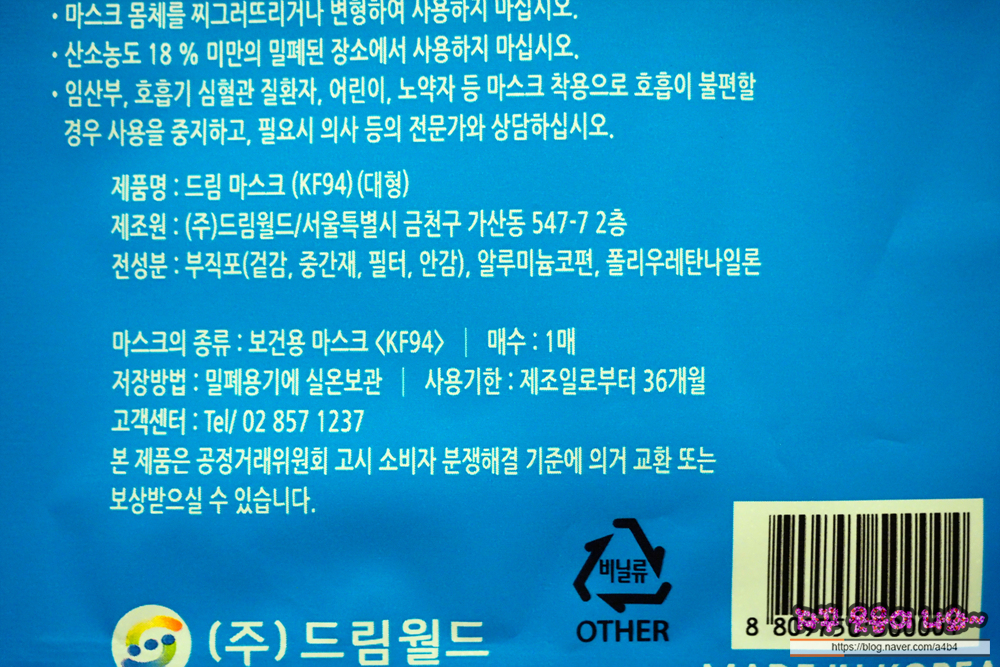[2/3] KF94 드림 마스크 대형 착용감 및 장단점 후기