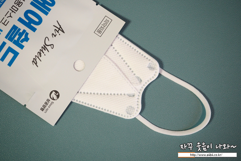 상공양행 에어쉴드 마스크는 약간 하드한 착용감과 브이(V)형 타입으로 안정적인 착용감과 마스크 내피와 입술 사이의 공간도 여유있게 확보됩니다. 또한 원형이 아닌 납작한 귀걸이 끈이 사용되어 장시간 착용해도 뒤에 무리가 덜 한 부분이 매력적인 부분입니다.