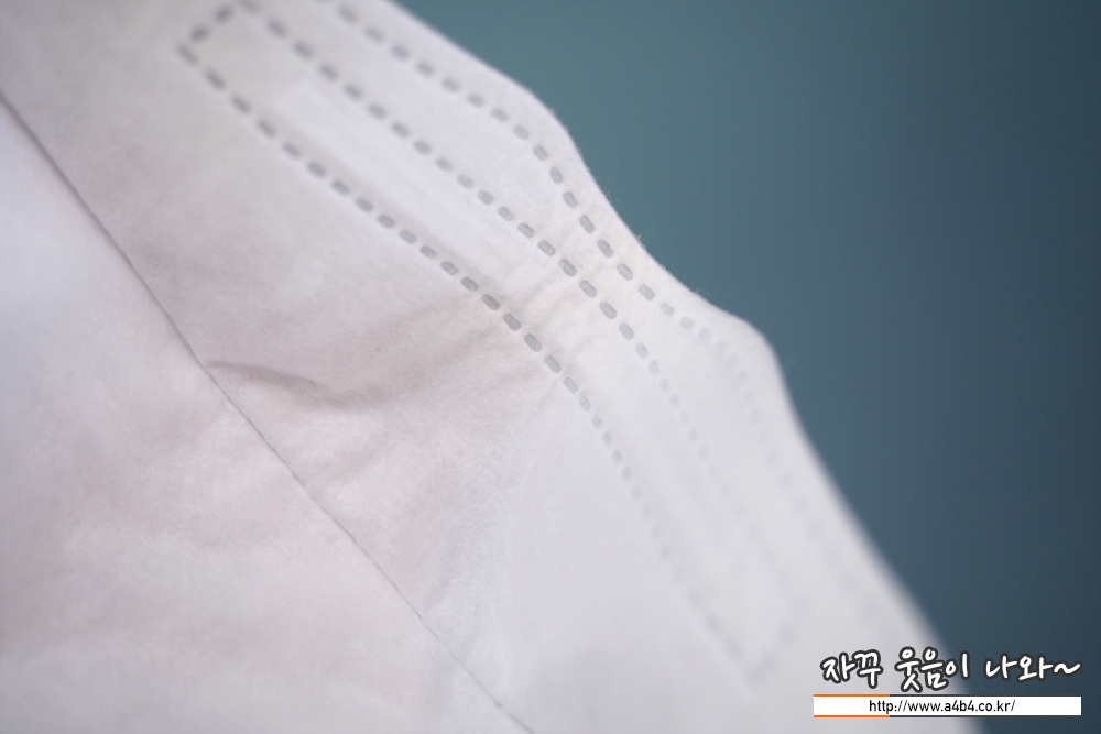 오늘 리뷰하는 필슨엠 산들 마스크 KF94 내피는 부드러운 감촉의 부직포가 사용 되었습니다. 부직포에 약품냄새나 문제는 없어 보이지만, 마스크 안쪽과 테두리 주변으로 보푸라기가 보이네요. 저는 하루종일 사용해도 간지럽거나 가려운 피부 트러블은 없었습니다만, 개인차가 있을 것으로 판단됩니다. 또한, 마스크 원산지는 파악하지 못했습니다.